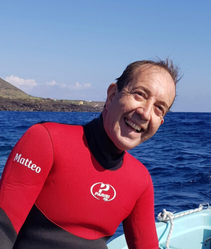 Grazie a mio papà mi avvicino al mare fin da piccolo, con lui le prime uscite con pinne e maschera alla caccia di cefalopodi. Vivendo lontano dal mare ho seguito sempre sport di terra che mi hanno insegnato l’impegno, le regole, il rispetto fino alla tarda adolescenza poi tutto cambiò o fui io a cambiare.